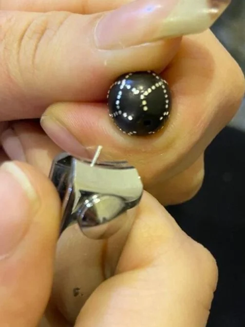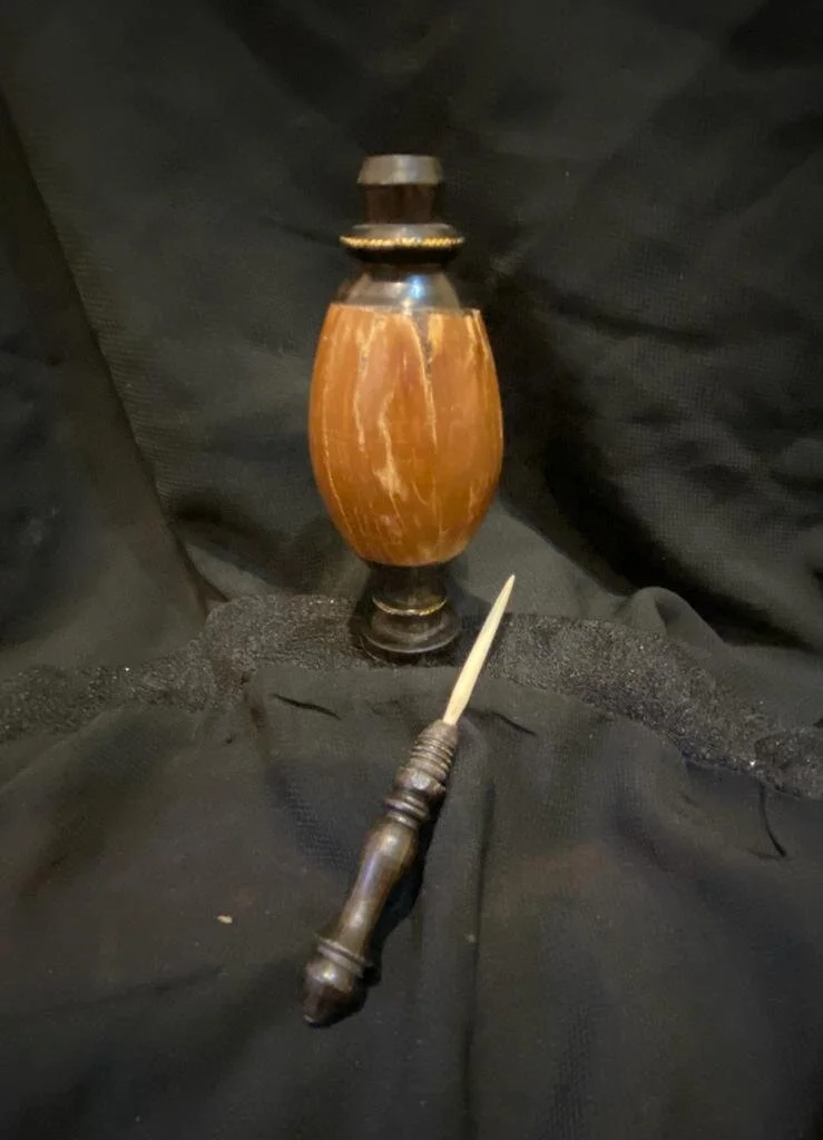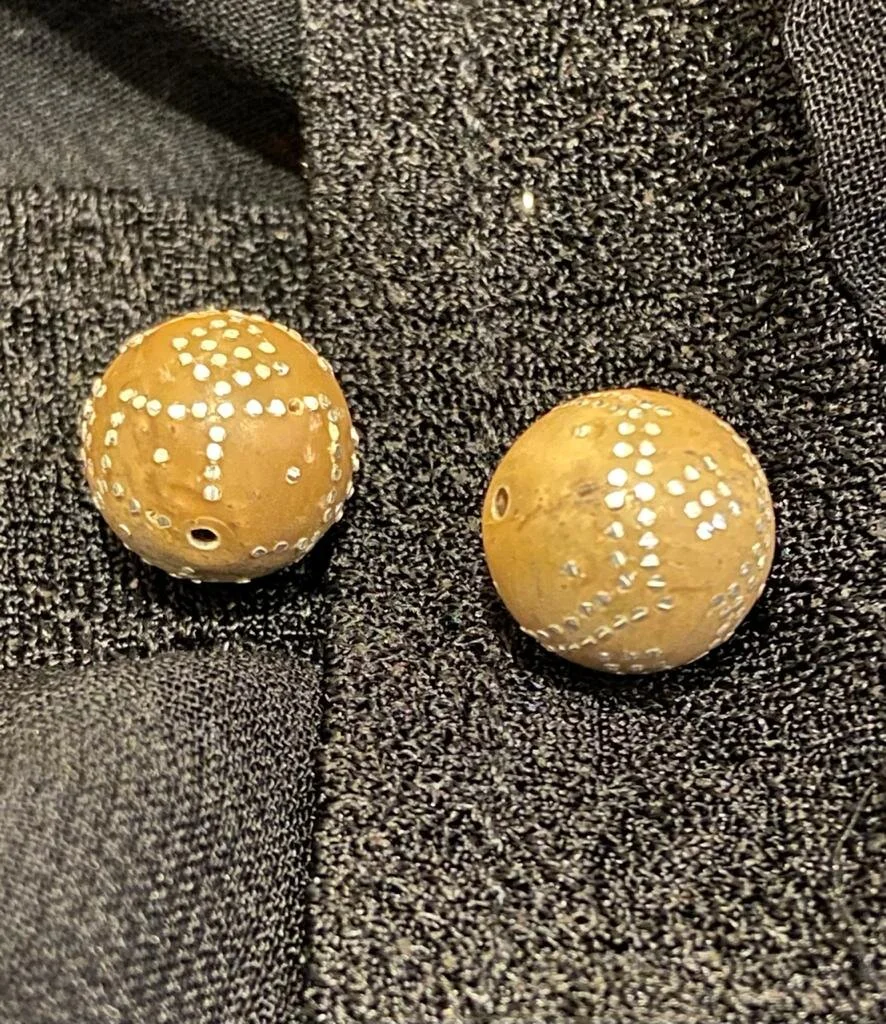 Nos perles, poignées et autres objets ornementaux fonctionnels, sont également fabriqués à partir de la noix de coquille qui provient du palmier kuk/koka. Il s'agit d'une noix dure qui était fréquemment utilisée dans l'antiquité et surtout au XIXe siècle pour fabriquer des objets ornementaux sculptés en raison de sa couleur naturelle agréable et de sa capacité à prendre une finition très brillante.